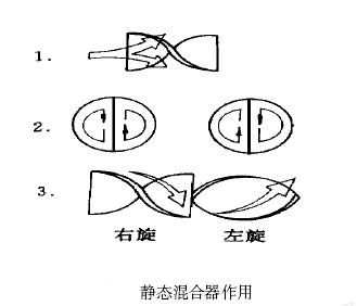 (3) 反轉作用。在混合器內水流經右旋元件和左旋元件的旋轉方向相反交替,提高了混合接觸效率。